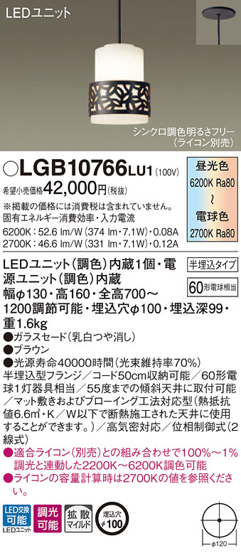Panasonic LED ¥Ú¥ó¥À¥ó¥È¥é¥¤¥È LGB10766LU1