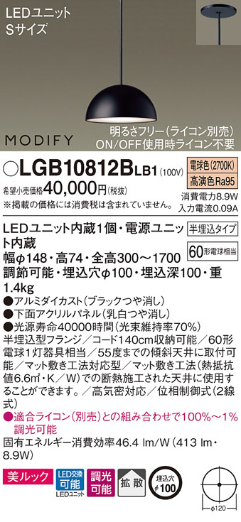 Panasonic LED ¥Ú¥ó¥À¥ó¥È¥é¥¤¥È LGB10812BLB1