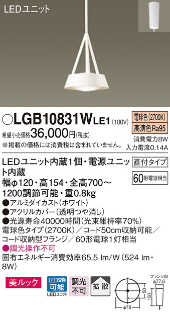 Panasonic LED ¥Ú¥ó¥À¥ó¥È¥é¥¤¥È LGB10831WLE1