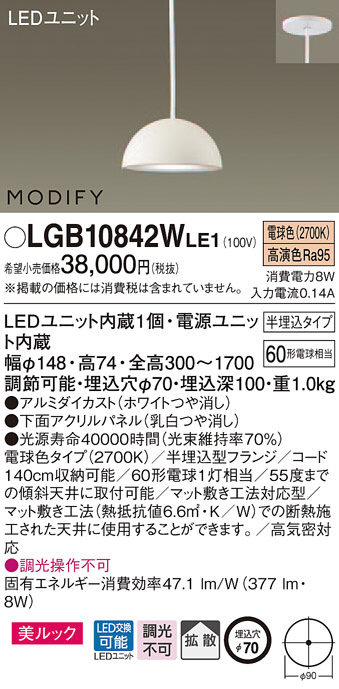 Panasonic LED ¥Ú¥ó¥À¥ó¥È¥é¥¤¥È LGB10842WLE1
