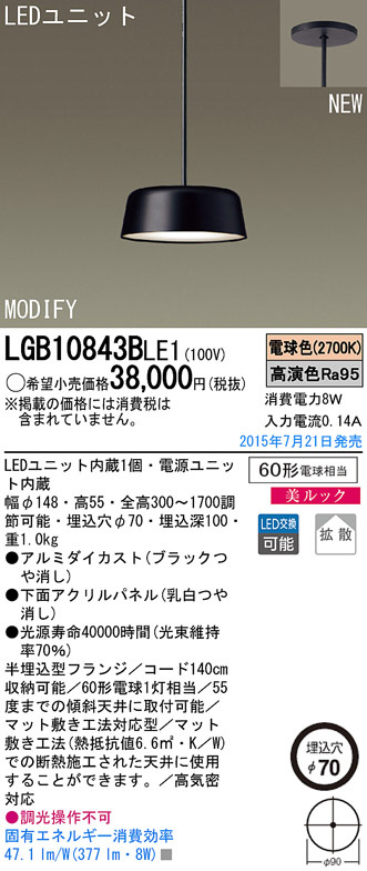 Panasonic LED ¥Ú¥ó¥À¥ó¥È¥é¥¤¥È LGB10843BLE1