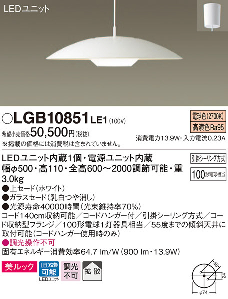 Panasonic ¥Ú¥ó¥À¥ó¥È¥é¥¤¥È LGB10851LE1