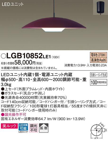 Panasonic ¥Ú¥ó¥À¥ó¥È¥é¥¤¥È LGB10852LE1