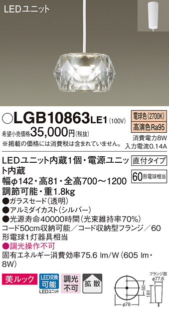 Panasonic LED ¥Ú¥ó¥À¥ó¥È¥é¥¤¥È LGB10863LE1