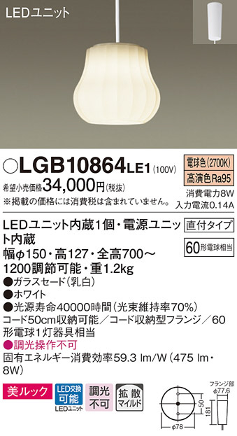 Panasonic LED ¥Ú¥ó¥À¥ó¥È¥é¥¤¥È LGB10864LE1