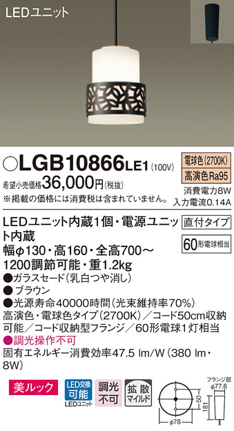 Panasonic LED ¥Ú¥ó¥À¥ó¥È¥é¥¤¥È LGB10866LE1