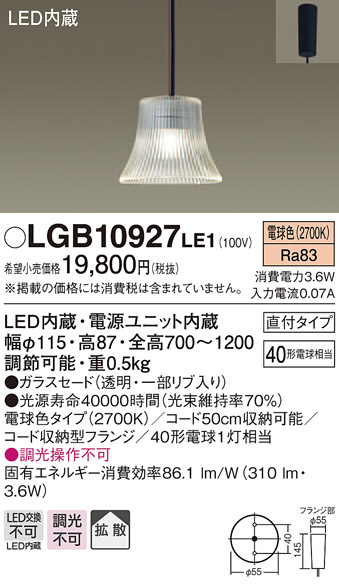 Panasonic LED ¥Ú¥ó¥À¥ó¥È¥é¥¤¥È LGB10927LE1