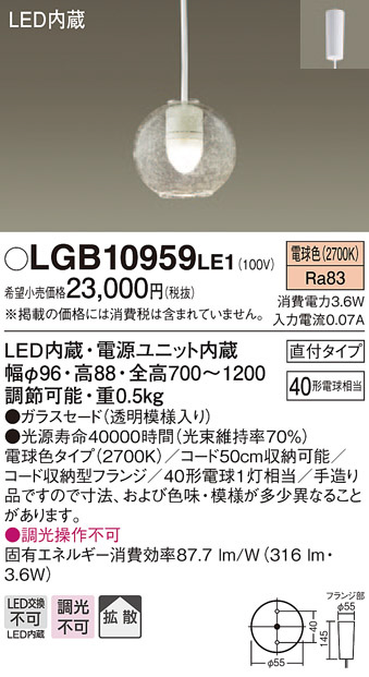 Panasonic LED ¥Ú¥ó¥À¥ó¥È¥é¥¤¥È LGB10959LE1