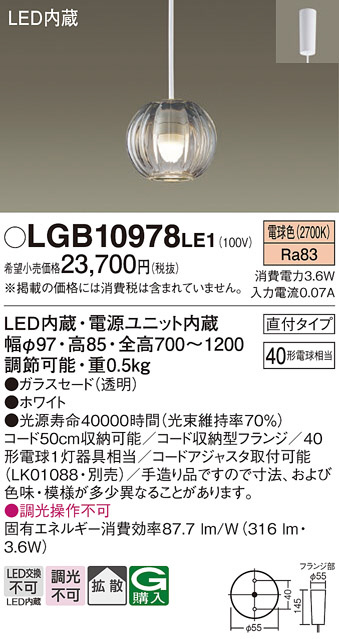 Panasonic ¥Ú¥ó¥À¥ó¥È LGB10978LE1