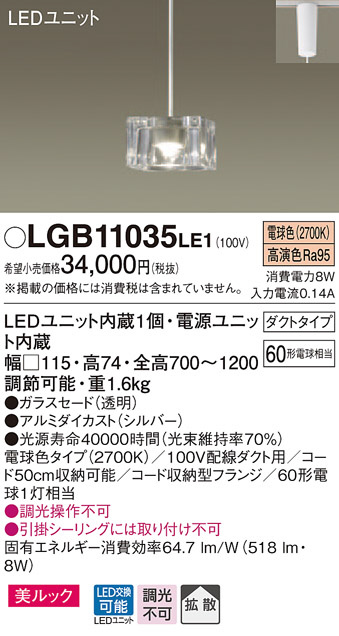 Panasonic LED ¥Ú¥ó¥À¥ó¥È¥é¥¤¥È LGB11035LE1