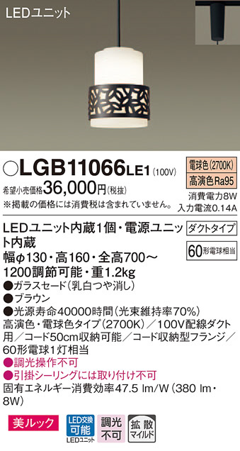 Panasonic LED ¥Ú¥ó¥À¥ó¥È¥é¥¤¥È LGB11066LE1