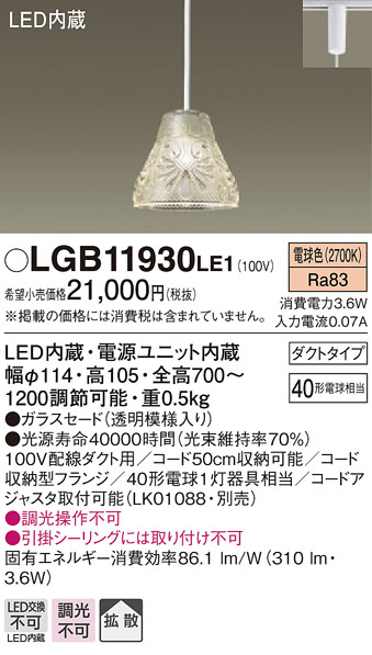 Panasonic ¥Ú¥ó¥À¥ó¥È LGB11930LE1