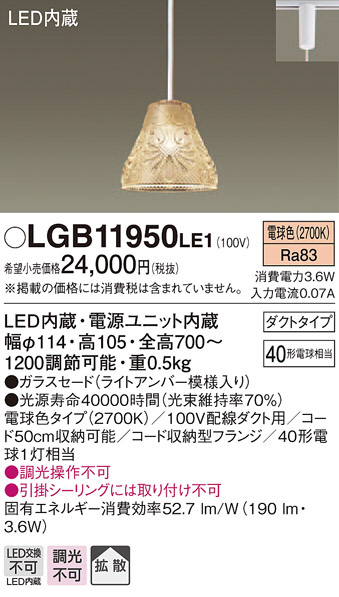 Panasonic LED ¥Ú¥ó¥À¥ó¥È¥é¥¤¥È LGB11950LE1