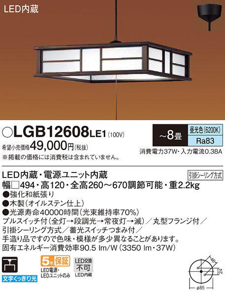 Panasonic ¥Ú¥ó¥À¥ó¥È¥é¥¤¥È LGB12608LE1