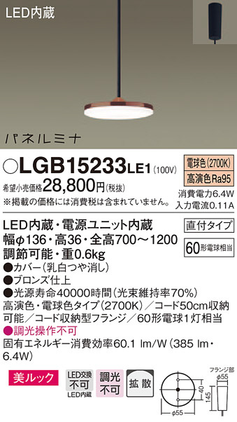Panasonic LED ¥Ú¥ó¥À¥ó¥È¥é¥¤¥È LGB15233LE1