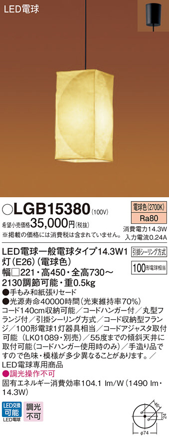 Panasonic LED ¥Ú¥ó¥À¥ó¥È¥é¥¤¥È LGB15380