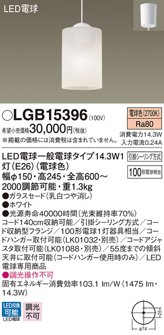 Panasonic ¥Ú¥ó¥À¥ó¥È¥é¥¤¥È LGB15396