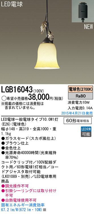 Panasonic LED ¥Ú¥ó¥À¥ó¥È¥é¥¤¥È LGB16043
