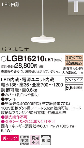 Panasonic LED ¥Ú¥ó¥À¥ó¥È¥é¥¤¥È LGB16210LE1