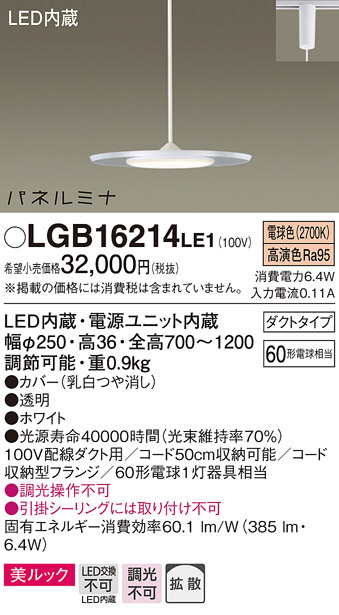 Panasonic LED ¥Ú¥ó¥À¥ó¥È¥é¥¤¥È LGB16214LE1
