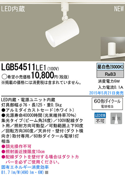Panasonic LED ¥¹¥Ý¥Ã¥È¥é¥¤¥È LGB54511LE1