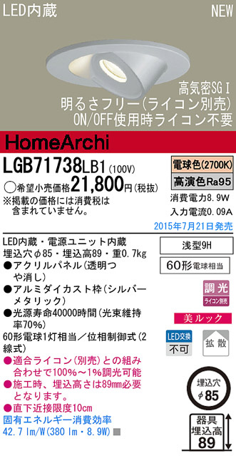 Panasonic LED ¥À¥¦¥ó¥é¥¤¥È LGB71738LB1