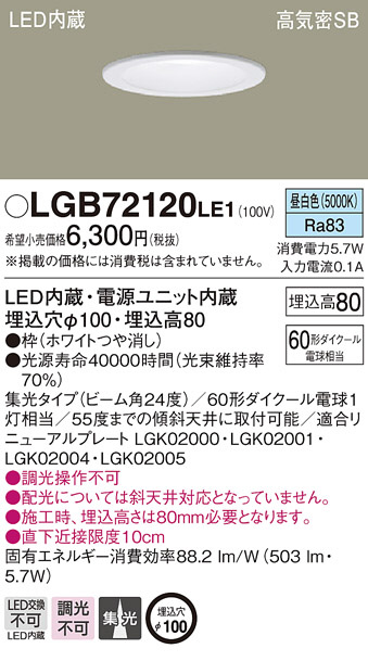 Panasonic LED ¥À¥¦¥ó¥é¥¤¥È LGB72120LE1