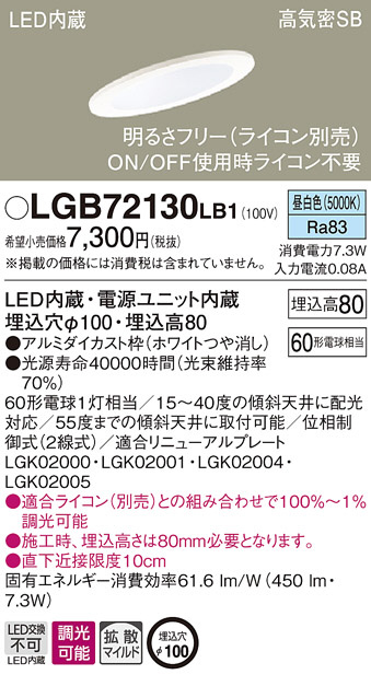 Panasonic LED ¥À¥¦¥ó¥é¥¤¥È LGB72130LB1