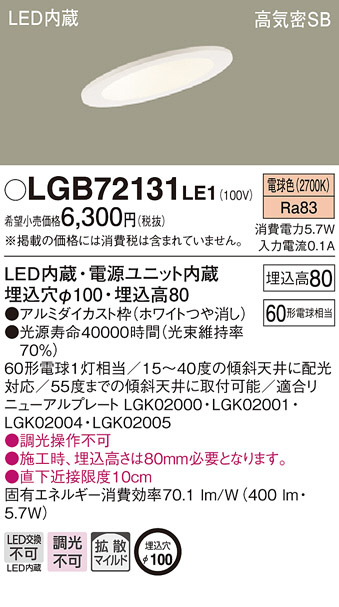 Panasonic LED ¥À¥¦¥ó¥é¥¤¥È LGB72131LE1