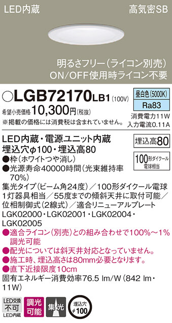 Panasonic LED ¥À¥¦¥ó¥é¥¤¥È LGB72170LB1