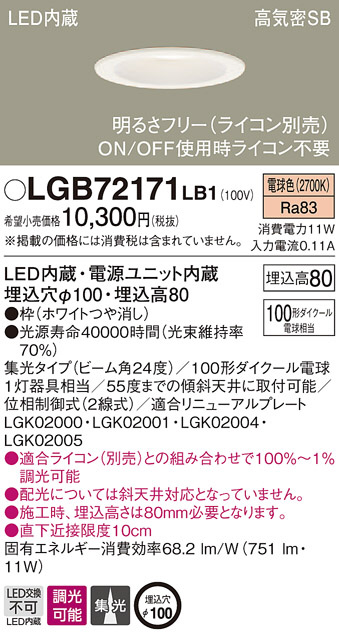 Panasonic LED ¥À¥¦¥ó¥é¥¤¥È LGB72171LB1