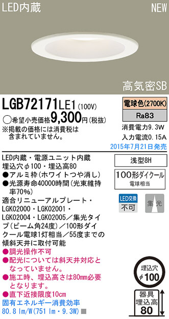Panasonic LED ¥À¥¦¥ó¥é¥¤¥È LGB72171LE1