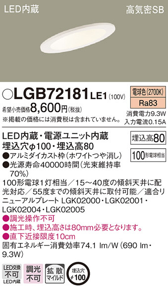 Panasonic LED ¥À¥¦¥ó¥é¥¤¥È LGB72181LE1