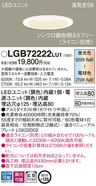 Panasonic LED ¥À¥¦¥ó¥é¥¤¥È LGB72222LU1