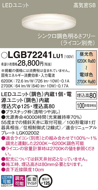 Panasonic LED ¥À¥¦¥ó¥é¥¤¥È LGB72241LU1