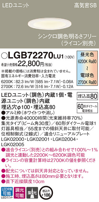 Panasonic LED ¥À¥¦¥ó¥é¥¤¥È LGB72270LU1