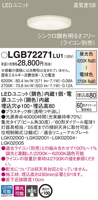 Panasonic LED ¥À¥¦¥ó¥é¥¤¥È LGB72271LU1