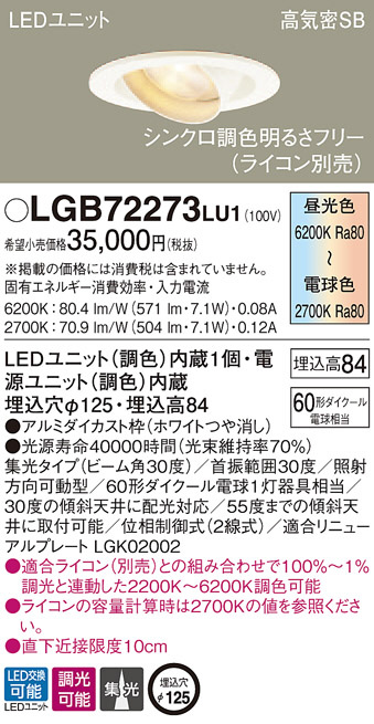 Panasonic LED ¥À¥¦¥ó¥é¥¤¥È LGB72273LU1