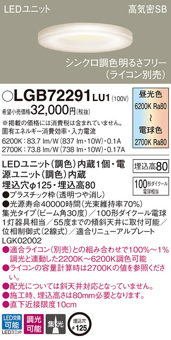 Panasonic LED ¥À¥¦¥ó¥é¥¤¥È LGB72291LU1