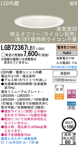 Panasonic LED ¥À¥¦¥ó¥é¥¤¥È LGB72367LB1