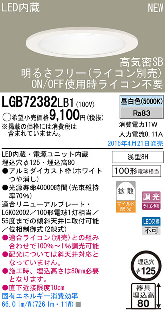 Panasonic LED ¥À¥¦¥ó¥é¥¤¥È LGB72382LB1