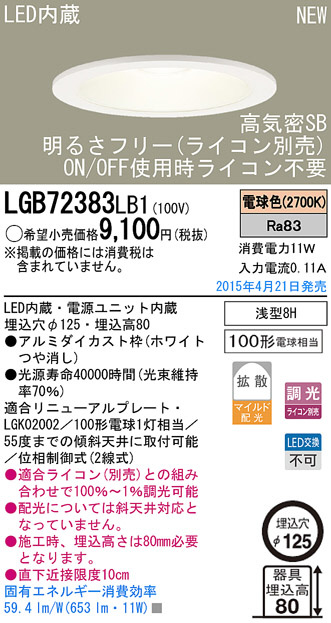 Panasonic LED ¥À¥¦¥ó¥é¥¤¥È LGB72383LB1