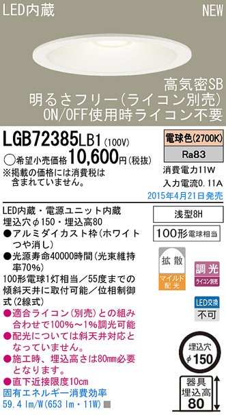 Panasonic LED ¥À¥¦¥ó¥é¥¤¥È LGB72385LB1