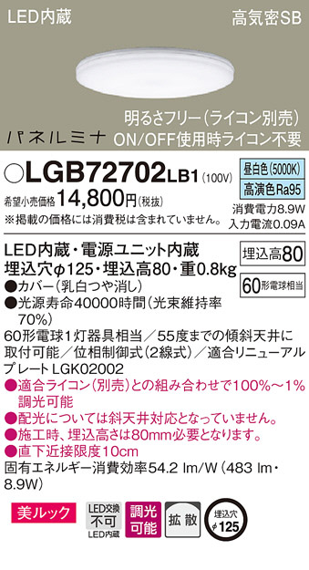 Panasonic ¥À¥¦¥ó¥é¥¤¥È LGB72702LB1
