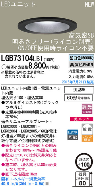 Panasonic LED ¥À¥¦¥ó¥é¥¤¥È LGB73104LB1