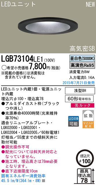 Panasonic LED ¥À¥¦¥ó¥é¥¤¥È LGB73104LE1