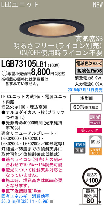 Panasonic LED ¥À¥¦¥ó¥é¥¤¥È LGB73105LB1