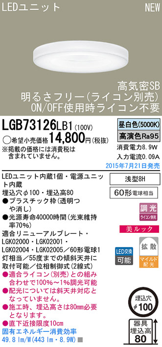 Panasonic LED ¥À¥¦¥ó¥é¥¤¥È LGB73126LB1