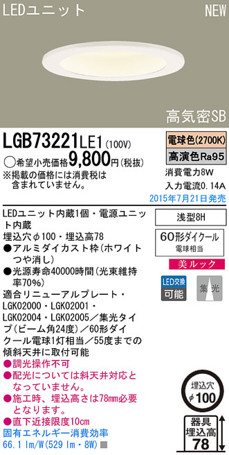 Panasonic LED ¥À¥¦¥ó¥é¥¤¥È LGB73221LE1