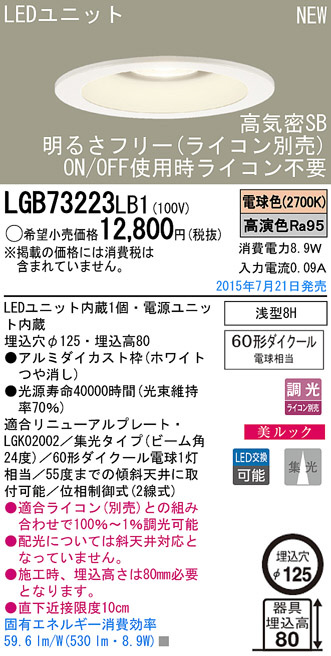 Panasonic LED ¥À¥¦¥ó¥é¥¤¥È LGB73223LB1